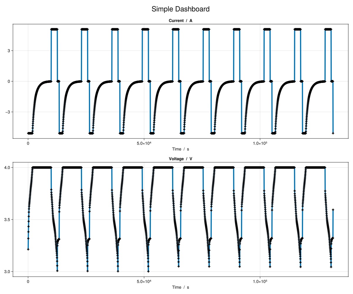 "ChargeCapacity" => [4.23702, 3.6848, 3.68173, 3.67829, 3.67608, 3.67392…Plot a simple pre-defined dashboard