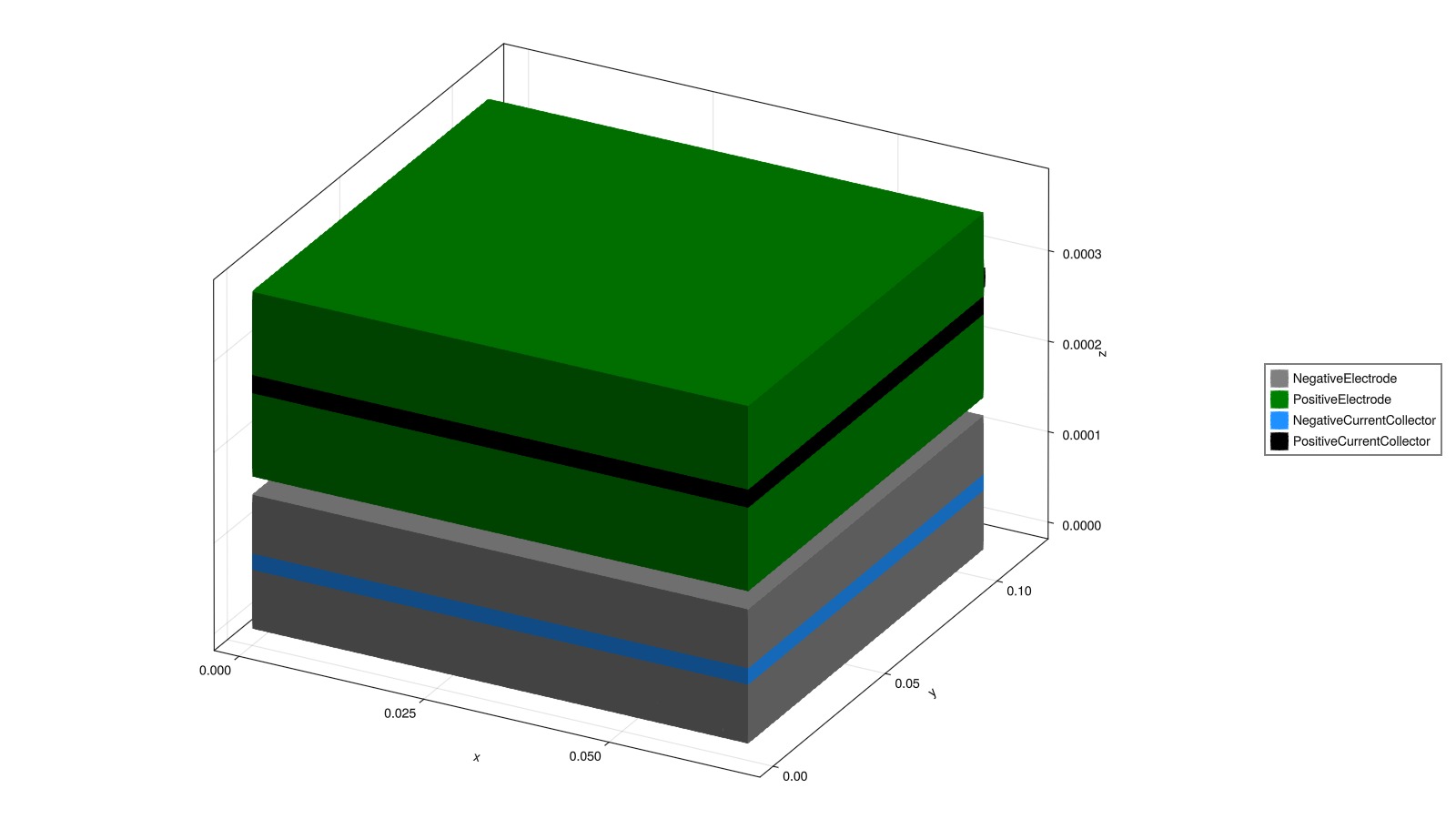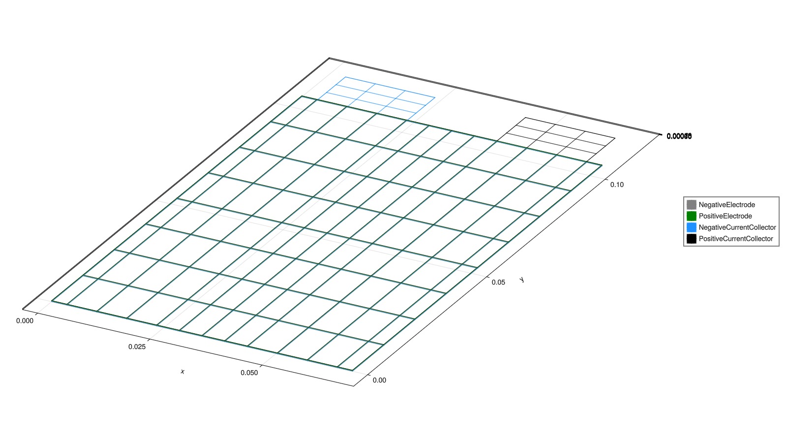 cell_parameters["PositiveElectrode"]["CurrentCollector"]["Thickness"] = 20e-62.0e-5A slightly coarser in-plane grid keeps the example fairly quick to set up.