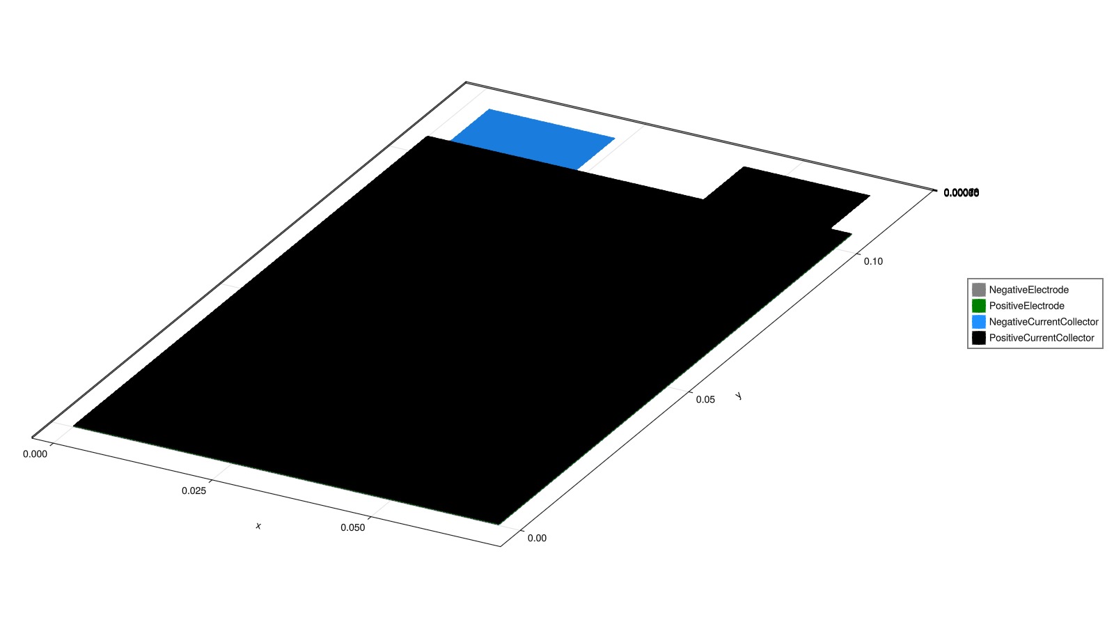 cell_parameters["Cell"]["TabLength"] = 12e-30.012Thicker current collectors are also easier to visualize.